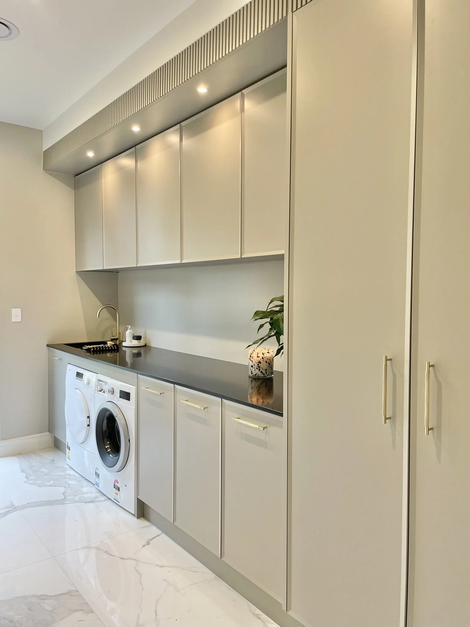 Our laundries are the workhorse of the home. Often combined with a mudroom, linen storage and general household cleaning gear, it’s essential that a multipurpose laundry maximises functionality and storage.